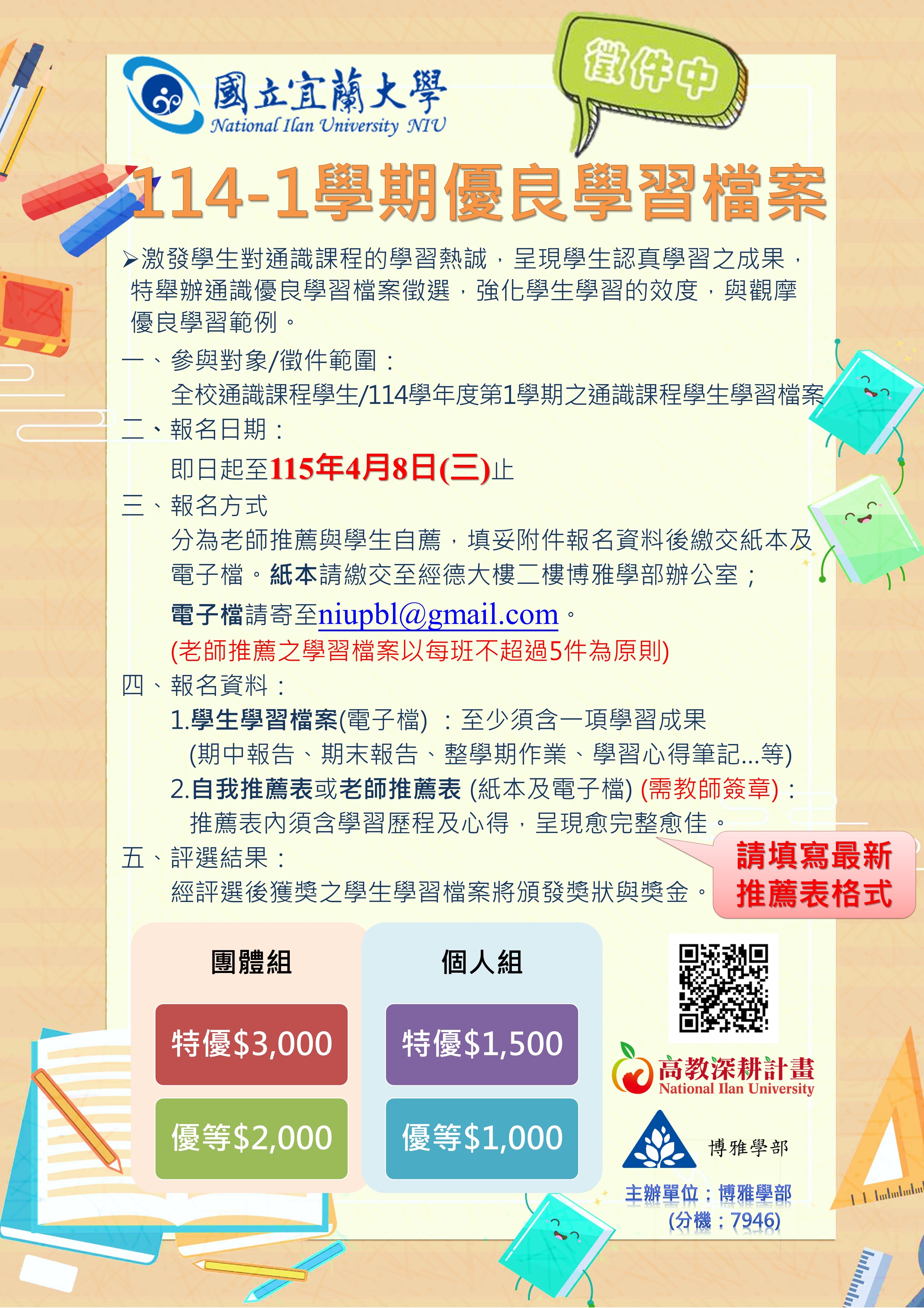 【活動】114學年度第1學期通識優良學習檔案開始徵件!!!